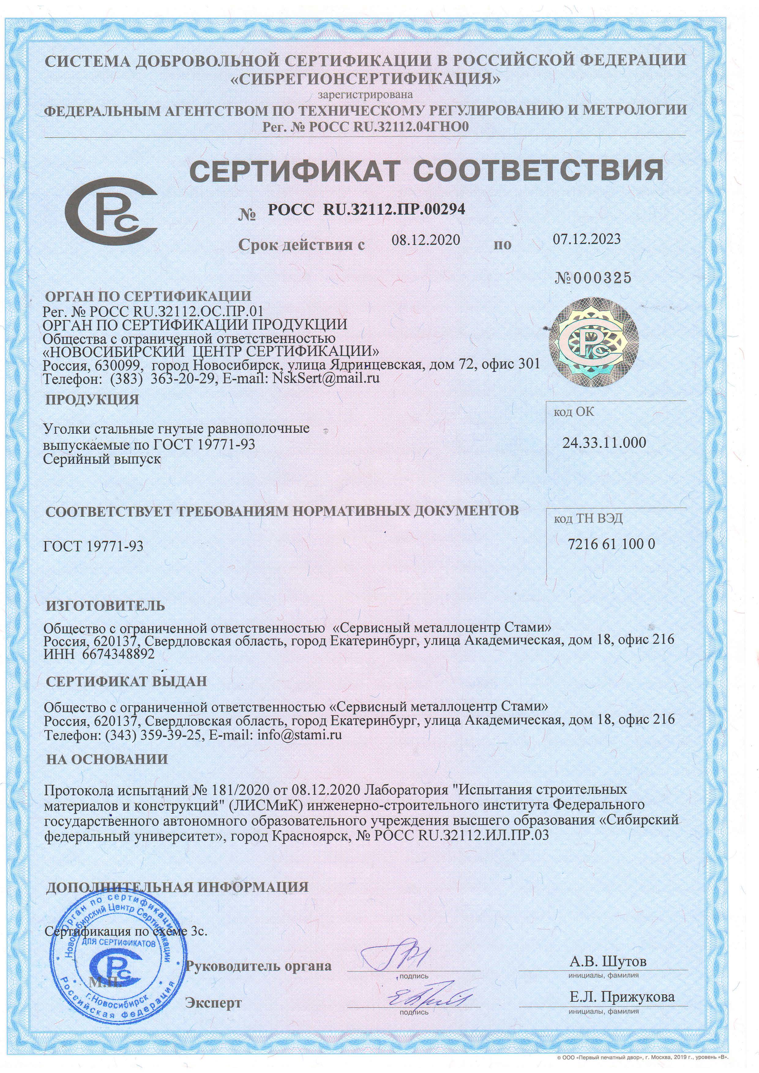 - уголок производится строго по ГОСТ 19771-93, ГОСТ 19772-93, что подтверждается сертификатом соответствия.
